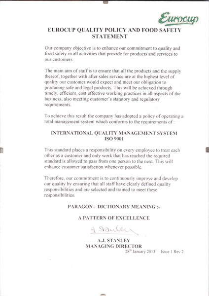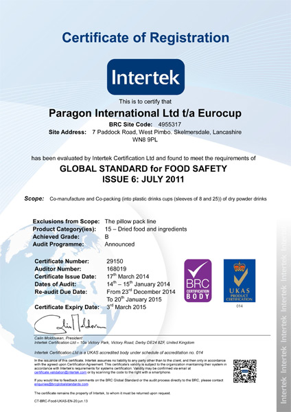 Eurocup always endeavours to exceed the expectations of its customers by providing service which is of the highest quality and represents the best value for money. We are BRC accredited and have been licensed to pack Nestle products for over 30 years.