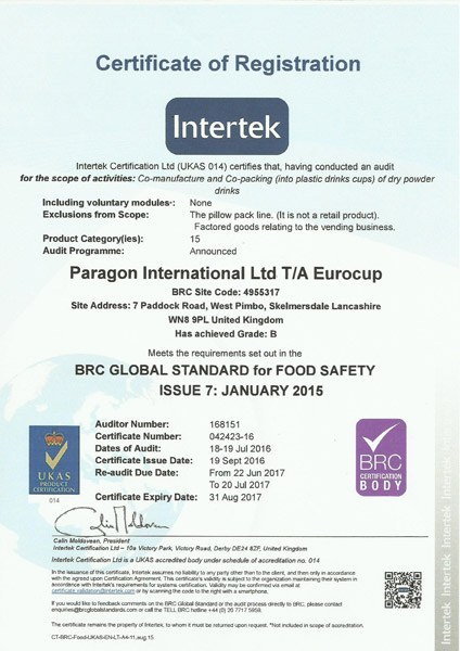 Eurocup is the trading name of Paragon International Ltd, the UK’s largest independent In-cup manufacturer. As a family company we have been committed to providing the best products and a personal service to all our customers for more than 35 years.